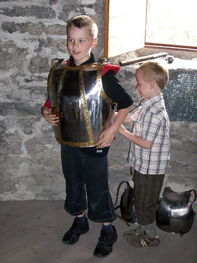 Guests are invited to try on different medieval armour and